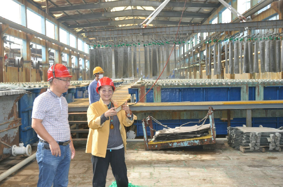 2015年11月5日上午,陽(yáng)光和煦,秋高氣爽,集團(tuán)副總裁趙笑梅視察了廣西銀億科技礦冶有限公司的精煉三車間,精煉一車間、鎳鹽車間。廣西銀億副總經(jīng)理任衛(wèi)東、總經(jīng)理助理吳家明、副總工程師和潤(rùn)秀、綜合管理辦公室主任章群宏陪同。
