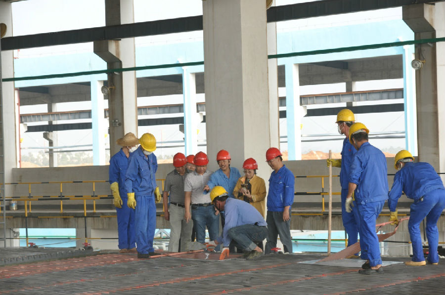 在精煉三車間,趙總從一樓走到二樓,邊走邊看,任總詳細(xì)向趙總匯報(bào)了精煉三車間的生產(chǎn)情況,生產(chǎn)工藝。精煉三車間是2014年新建的車間,2015年11月投產(chǎn),主要生產(chǎn)電積銅。趙總聽(tīng)了任總的介紹,不停地點(diǎn)頭稱贊。在二樓,趙總停下來(lái),認(rèn)真觀看工人對(duì)產(chǎn)出的銅板進(jìn)行外觀校正,看到光亮如鏡,四周整齊的銅板,連聲稱贊廣西銀億的制銅工藝確實(shí)先進(jìn),非常高興,不由自主的拿出智能手機(jī),拍下了車間工人勞動(dòng)的情景。
