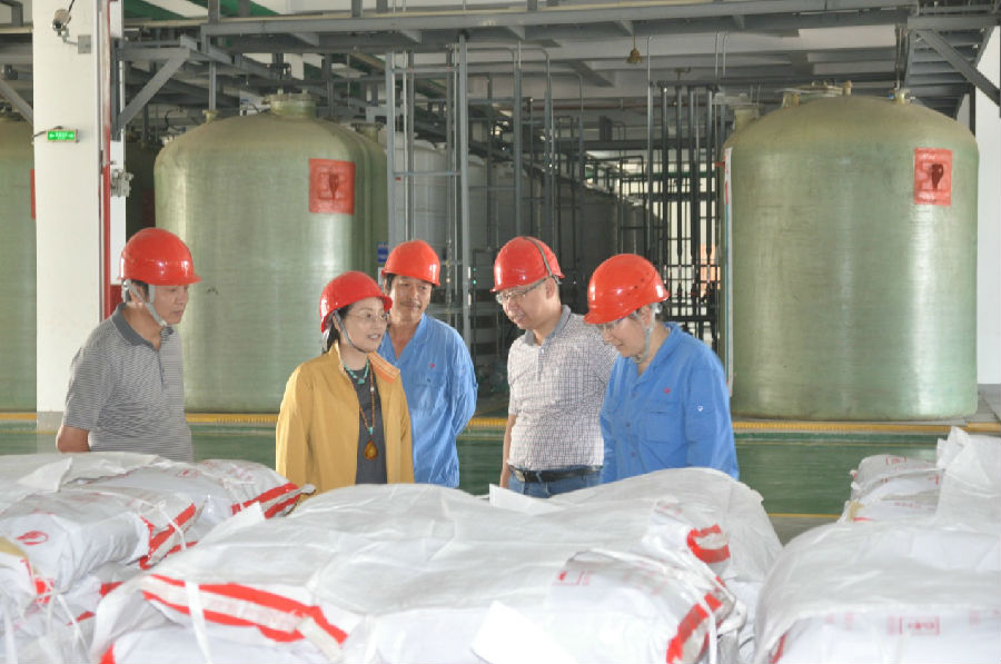 不一會(huì),車到了鎳鹽車間。走進(jìn)高大寬敞整潔的鎳鹽車間,一進(jìn)門,趙總就看到了堆放整齊的氯化鈷產(chǎn)品,走到產(chǎn)品邊,興奮地用手摸著氯化鈷產(chǎn)品,連聲稱贊:“產(chǎn)品好!包裝也好!”巡視車間設(shè)備運(yùn)行情況,趙總感到十分驚奇,諾大的車間,生產(chǎn)線設(shè)備運(yùn)行平穩(wěn),噪音小,無(wú)灰塵,管控人員少,監(jiān)控室多個(gè)屏幕,準(zhǔn)確的反映了設(shè)備運(yùn)行情況。車間主任張磊認(rèn)真的向趙總匯報(bào)了鎳鹽車間生產(chǎn)情況,并說(shuō)鎳鹽車間目前還沒(méi)有完全投產(chǎn),部分生產(chǎn)設(shè)備正在安裝中,如果全部投產(chǎn),產(chǎn)量將翻一番。趙總聽(tīng)了非常滿意,在車間與公司任總、吳總助、章主任、車間張主任合影。